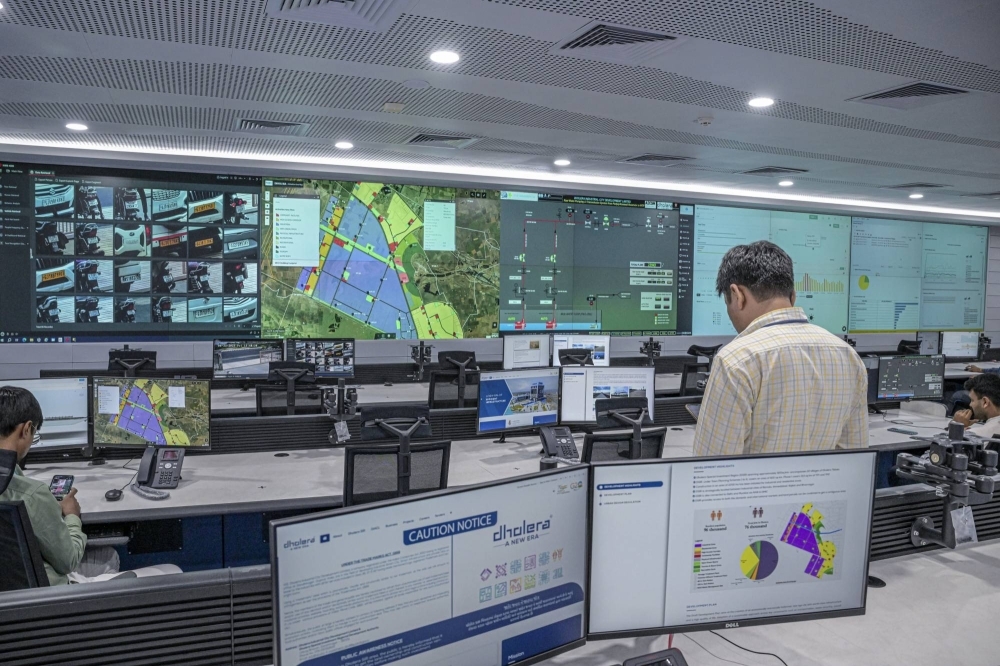 धोलेरा स्मार्ट सिटी के लिए एक उच्च तकनीक कमांड सेंटर, जो विकास के प्रारंभिक चरण में है, धोलेरा में है। — ©2023 द न्यूयॉर्क टाइम्स कंपनी A high-tech command centre for Dholera Smart City, which is in the early stages of development, in Dholera. — ©2023 The New York Times Company नई दिल्ली में अपने …